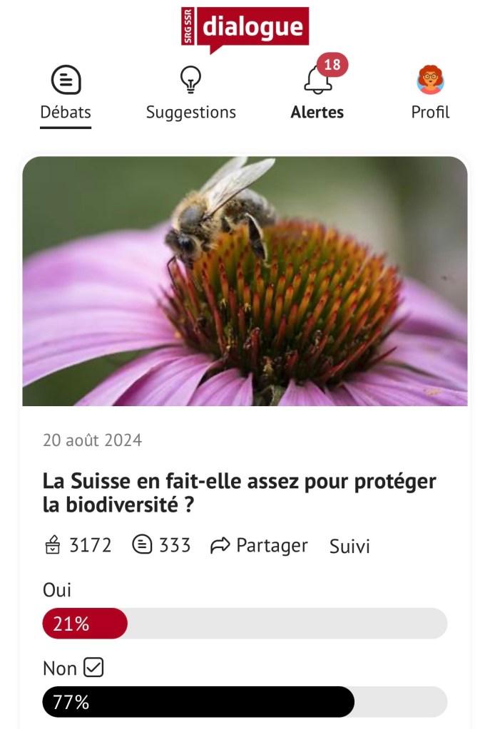 Oui, en effet, notre biodiversité est à préserver, ici en Suisse comme ailleurs, par ailleurs !