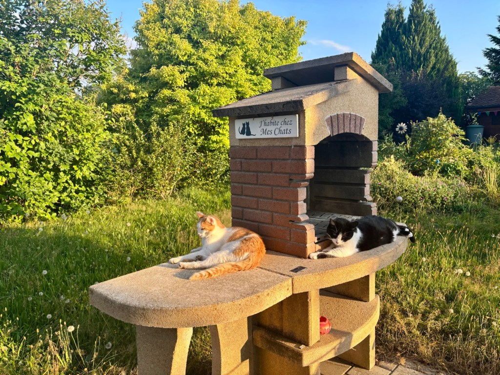 Mais non, notre biodiversité n’est pas du tout menacée dans le jardin, car nous y laissons pousser les fleurs des champs et qu’ainsi, toutes sortes d’insectes y pullulent. Les oiseaux en raffolent et les bouffent à tir d’ailes, sans que nos chats puissent les croquer, les oiseaux, pas les insectes 😂