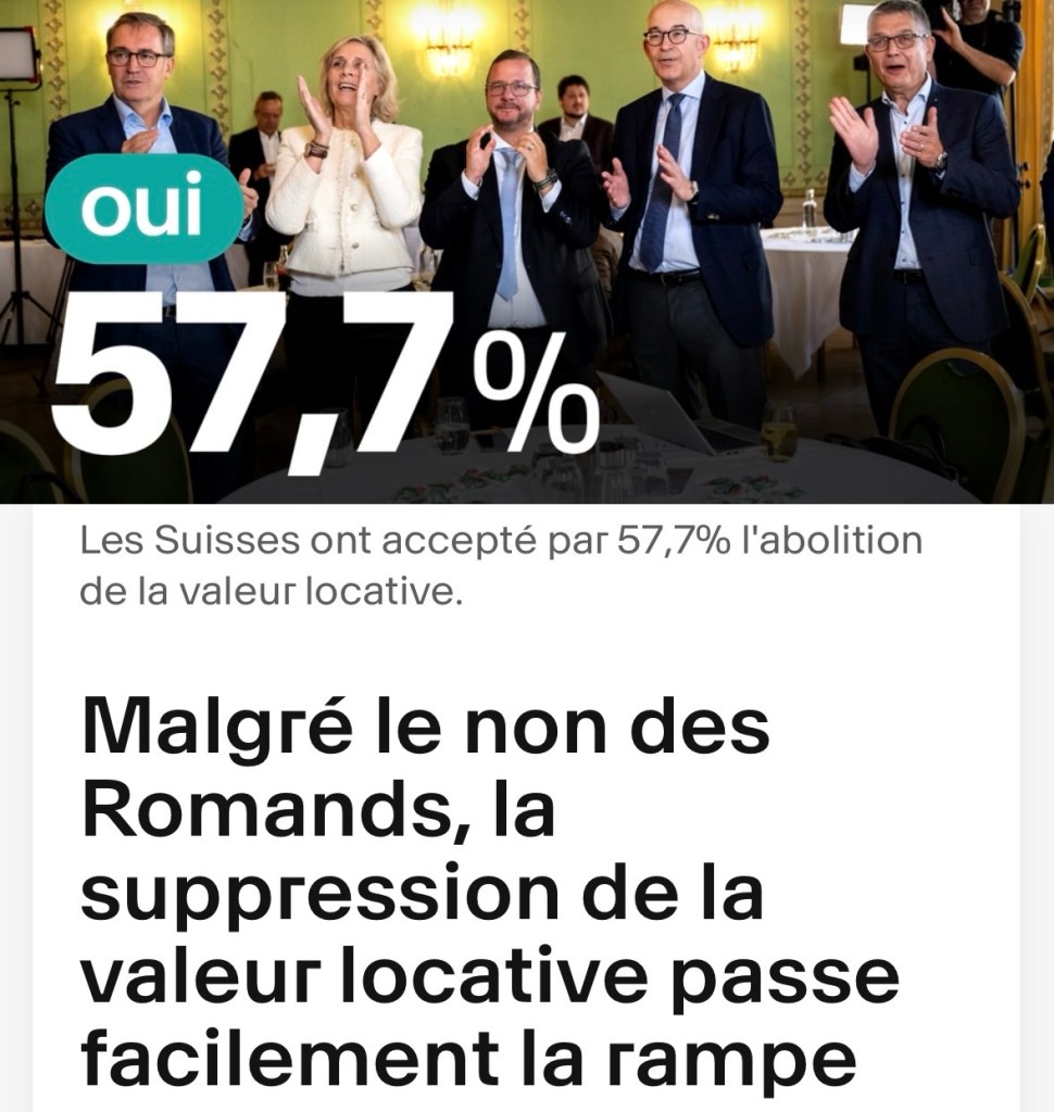 Non, incroyable, la valeur locative fictive va disparaître, pour une fois, ma foi, une réforme a réussi à passer en Suisse, merci aux Suisses allemands !