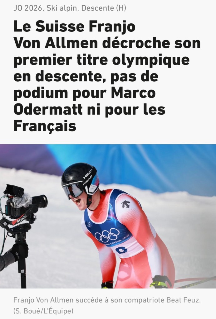 Bon, depuis cette époque épique, j’ai grandi, j’ai compris, mais je suis toujours bien joyeux quand un des « nôtres » gagne la descente des JO, bravo à Zurbriggen en 1988, à Defago en 2010 et à Beat Feuz, Kugel Blitz est le dernier vainqueur en titre, c’était aux JO de Pékin en 2022.